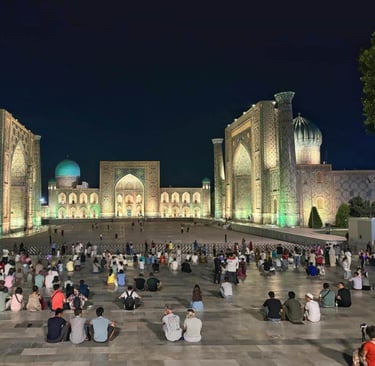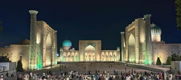 Samarkand di Uzbekistan adalah salah satu kota tertua di Asia Tengah yang berkembang pesat di jalur Sutra. Kota ini mencapai kejayaan luar biasa pada masa Dinasti Timurid abad ke-14 dan ke-15, ketika Timur Lenk menjadikannya ibu kota. Pada masa itu, Samarkand berubah menjadi pusat ilmu pengetahuan, seni, dan perdagangan yang mendunia.